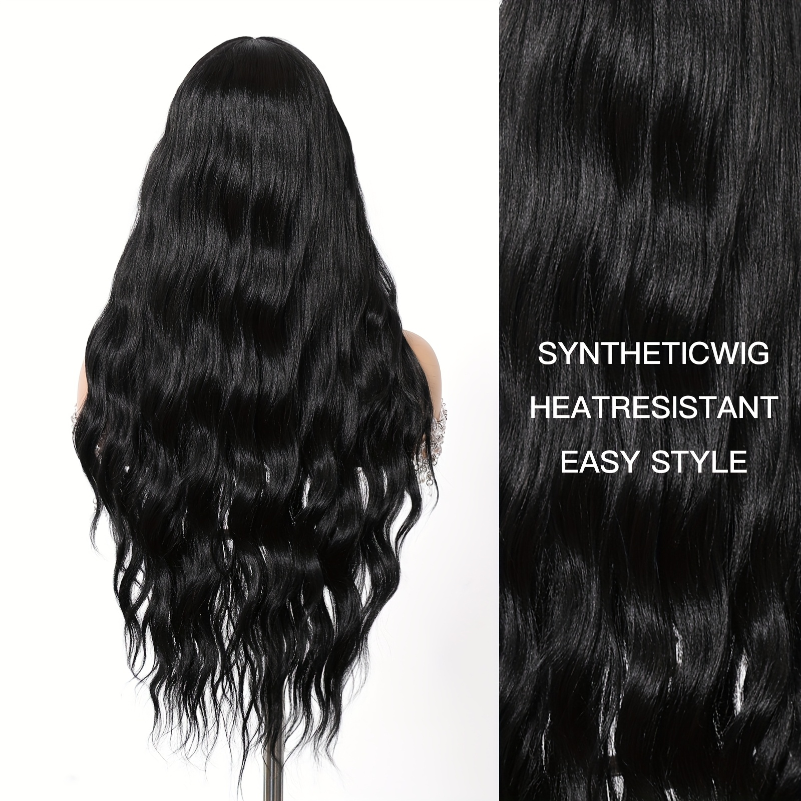 71.12 cm Women'S Black Imported Silk Small T Front Lace Wig Head Set Medium Parted Long Curly Hair Wig, Elegant And Fashionable, Suitable for Daily Use
