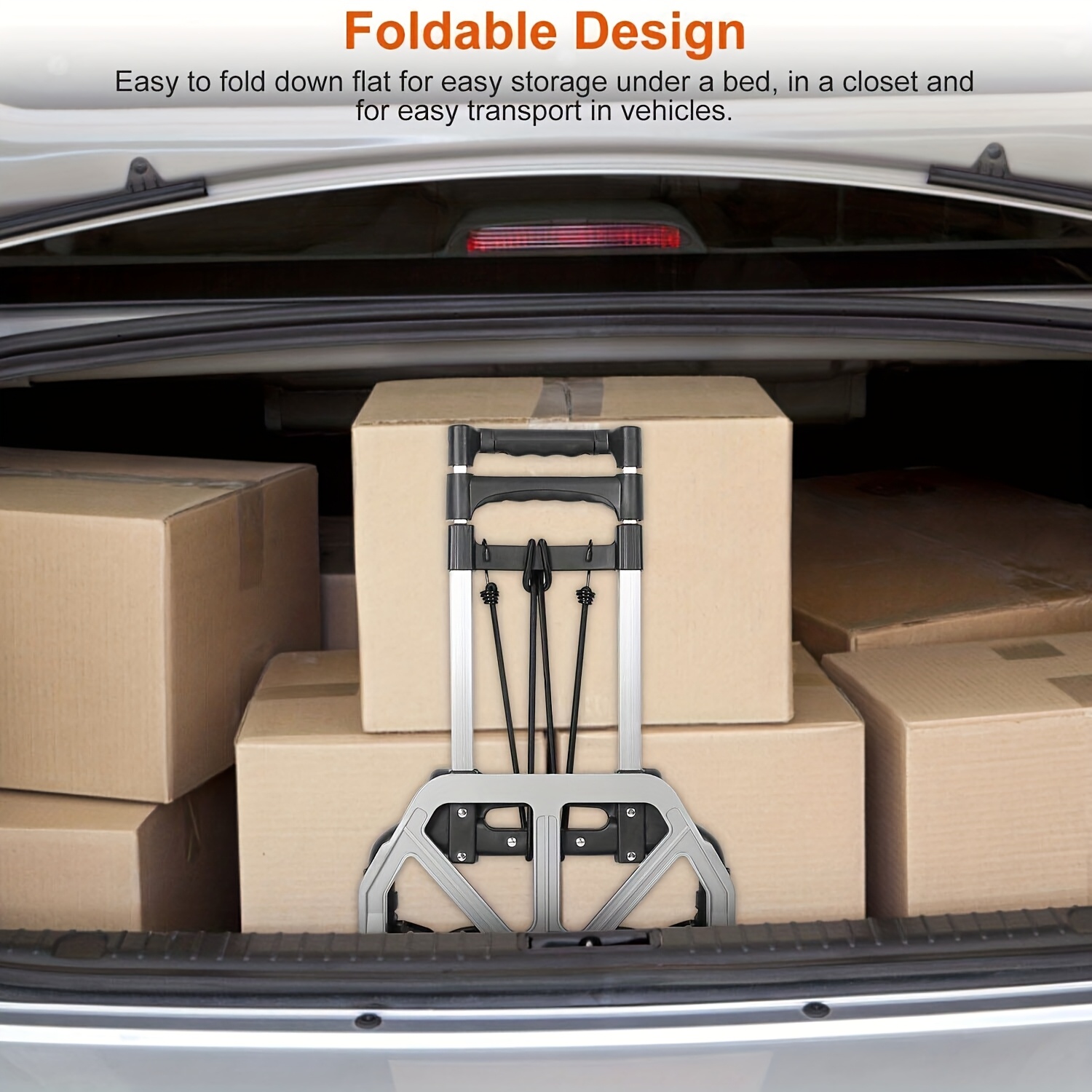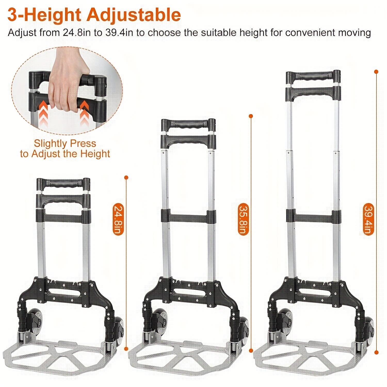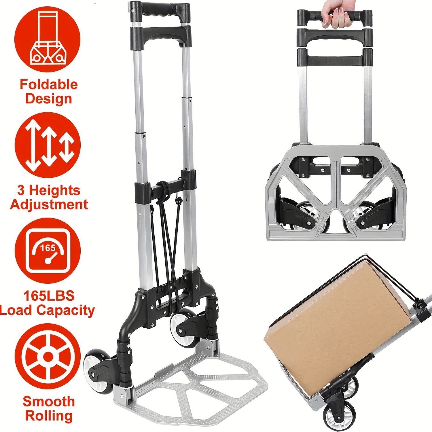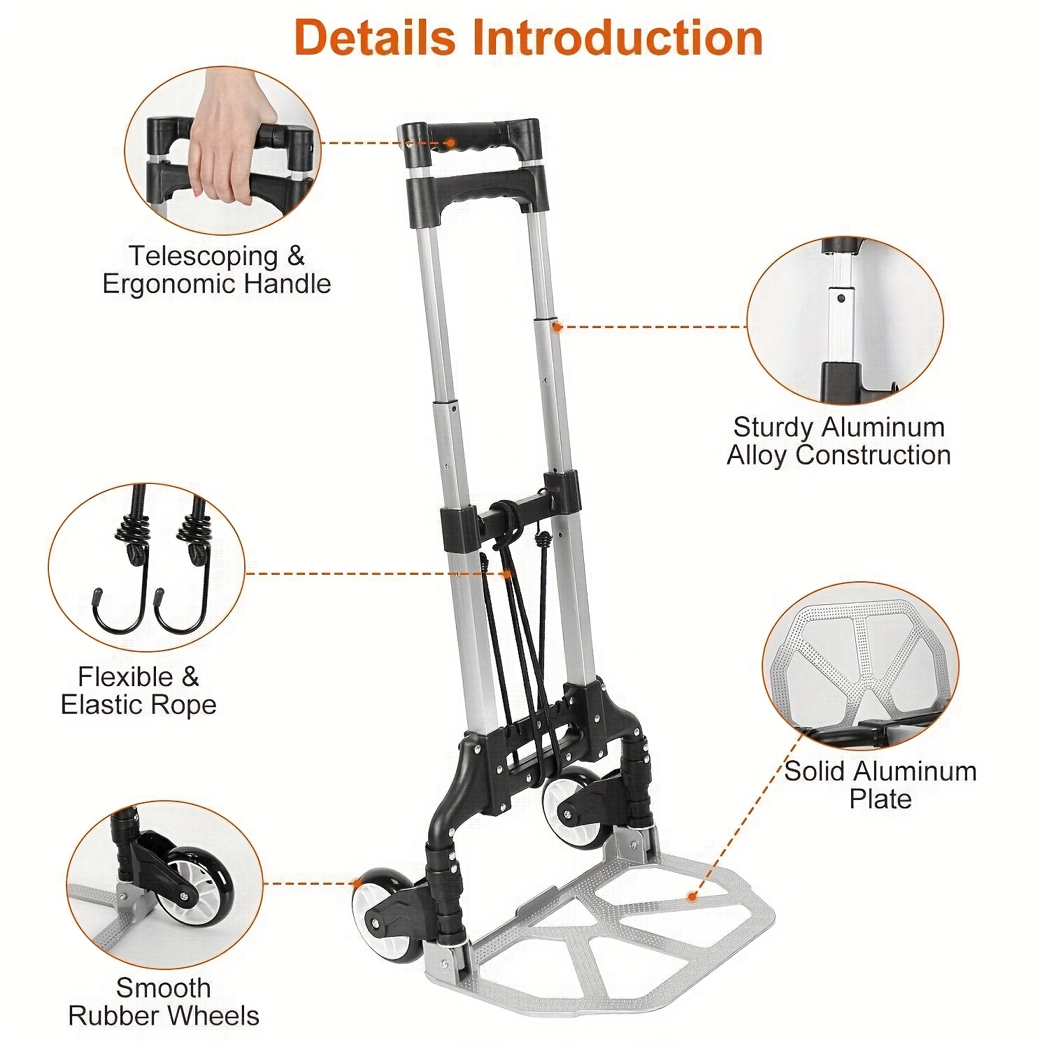 Description – 75KG Lightweight Aluminium Alloy Hand Truck Trolley with 3 Adjustable Heights & Bungee Cord