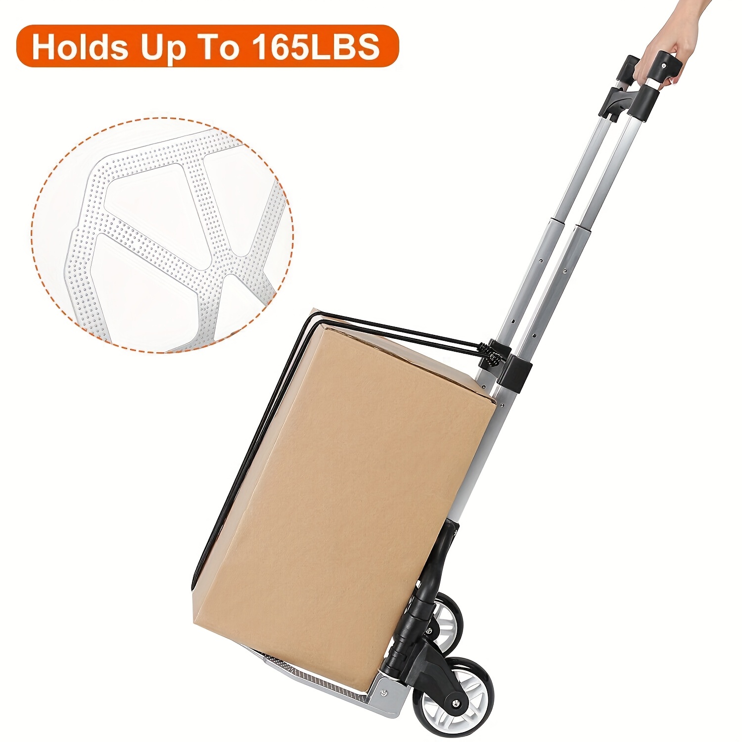 - Large Wheels for Easy Mobility: Equipped with large wheels, this hand truck can easily navigate different terrains, making it perfect for outdoor activities, shopping, and office relocations.