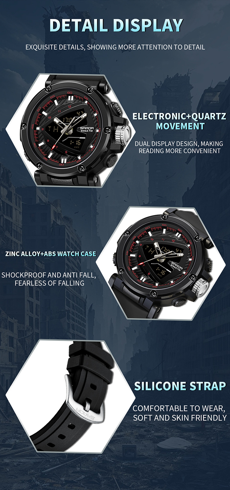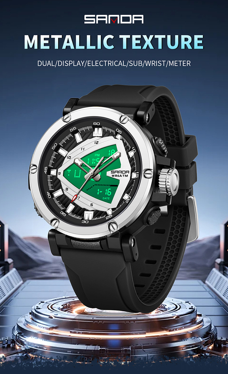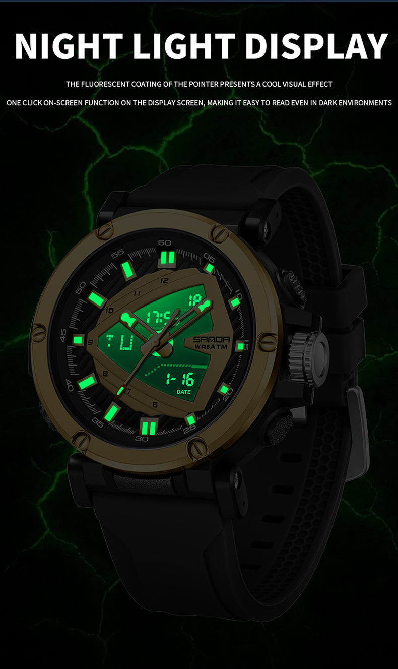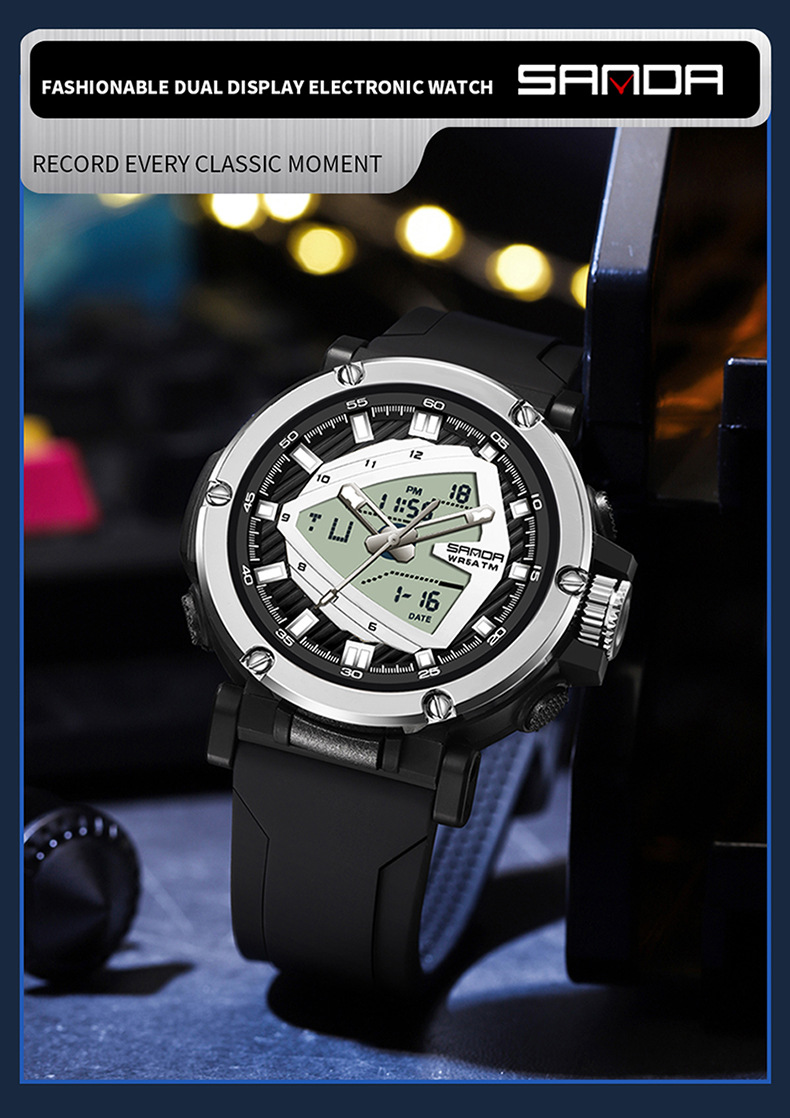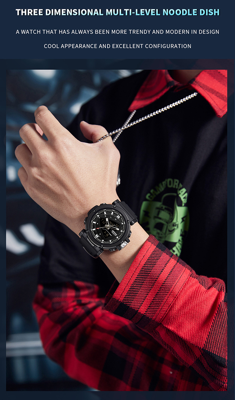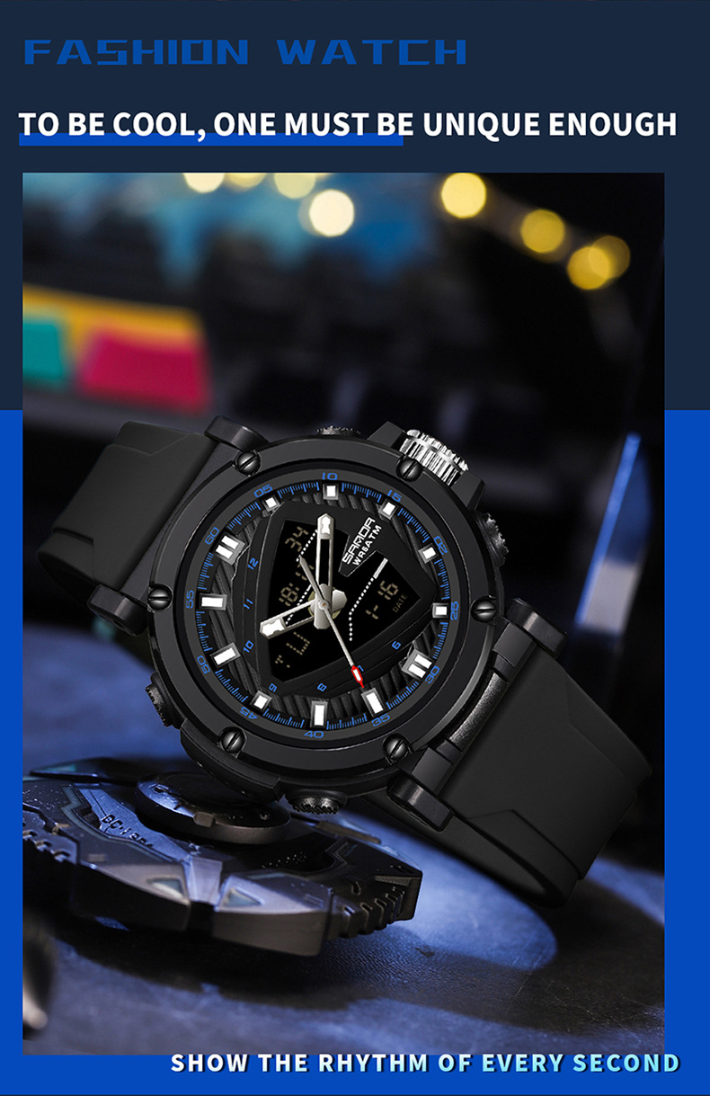 The 9052 Sports Waterproof Alarm Clock Electronic Watch is engineered with durability and comfort in mind. Whether you're sweating through a tough workout, hiking up a mountain, or simply going about your day, this watch is designed to stay with you every step of the way. Its rugged construction ensures it will withstand daily wear and tear while providing a comfortable fit that’s perfect for extended use.