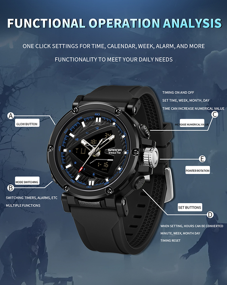 The 9052 Sports Waterproof Alarm Clock Electronic Watch isn't just about fitness and sport; it’s also a practical everyday tool. With a built-in alarm clock function, this watch helps you stay punctual, whether you're waking up for an early workout or remembering important meetings.