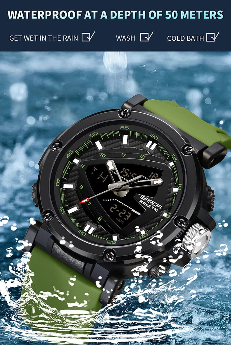 One of the standout features of the 9052 Sports Waterproof Alarm Clock Electronic Watch is its waterproof capability. Whether you’re swimming in the ocean, running in the rain, or caught in a splash during water sports, this watch won’t let you down. It’s designed to handle moisture, ensuring you can wear it no matter the conditions.