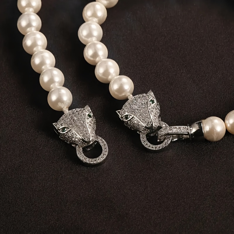 Leopard Head Loop Clasp: The unique Leopard head clasp design adds a bold, fashionable twist to the classic pearl jewelry, making this set stand out.