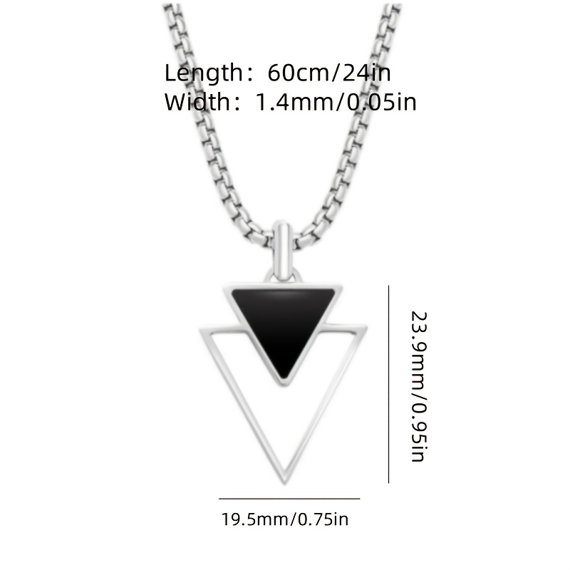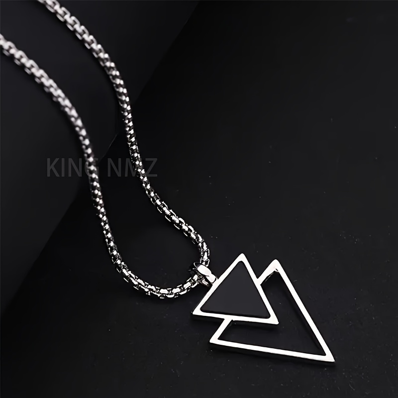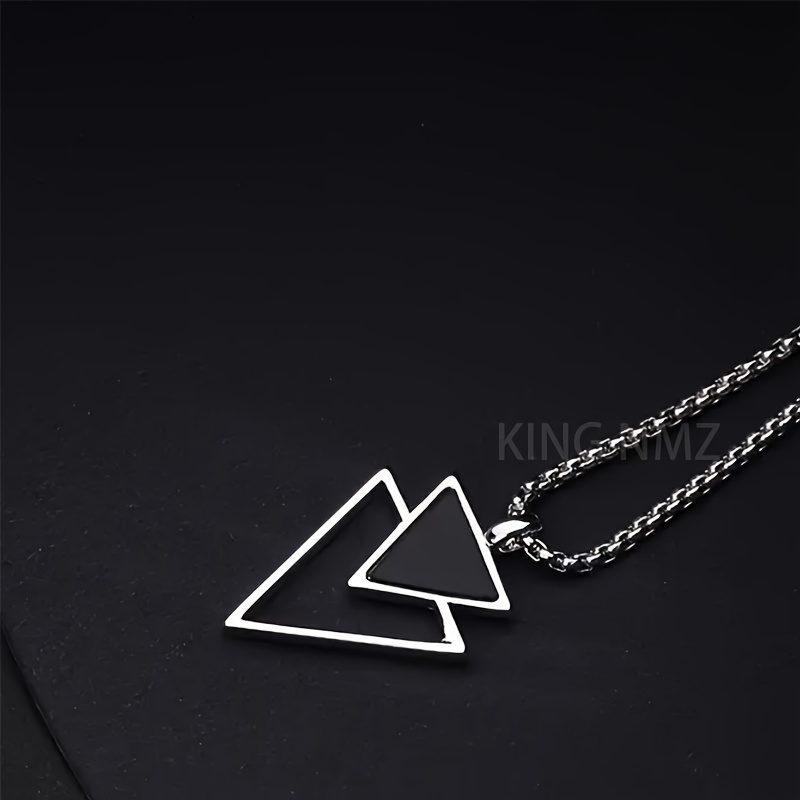 This necklace features a striking triangular pendant made from durable enamel, offering a bold, geometric design that is perfect for men who want to express their individuality and creativity. The silvery-plated chain provides a sleek, polished finish, ensuring that the necklace complements a wide range of styles, from casual to more fashion-forward looks.