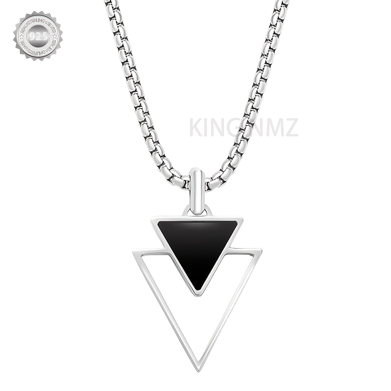 925 Silvery Plated Triangular Enamel Pendant Men's Necklace – Bold, Avant-Garde Style for the Modern Man