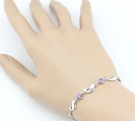 925 Sterling Silver Bracelet Wholesale, Dolphin Amethyst Bracelet, Women's Short Silver Jewelry