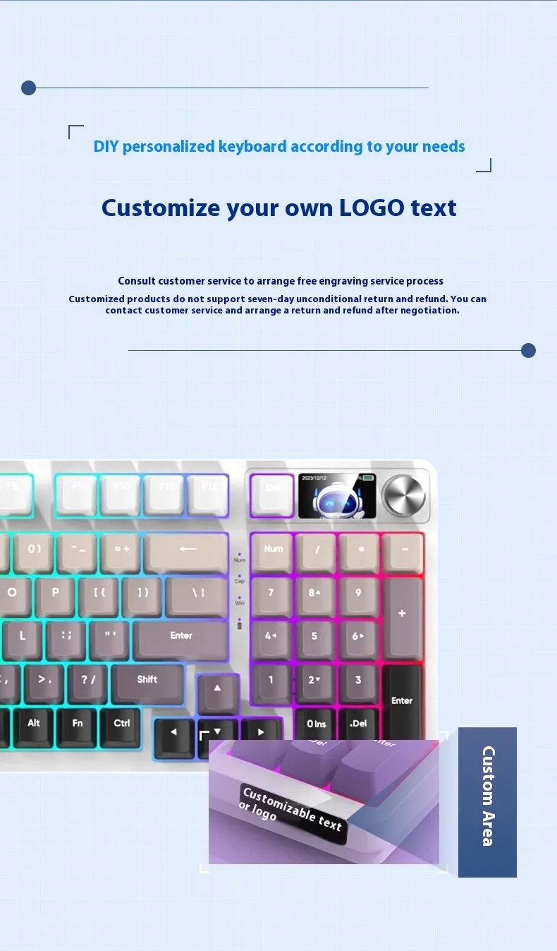29style: 98 key the third mock examination - white background - fog blue (no screen version/metal knob),