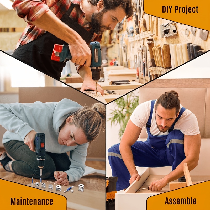 The 3-in-1 eccentric mechanism ensures that the cam locks hold panels and doors tightly in place, offering an adjustable, sturdy connection. Whether you are assembling new furniture, making repairs, or upgrading existing cabinets, this set provides the right fasteners to get the job done quickly and securely.