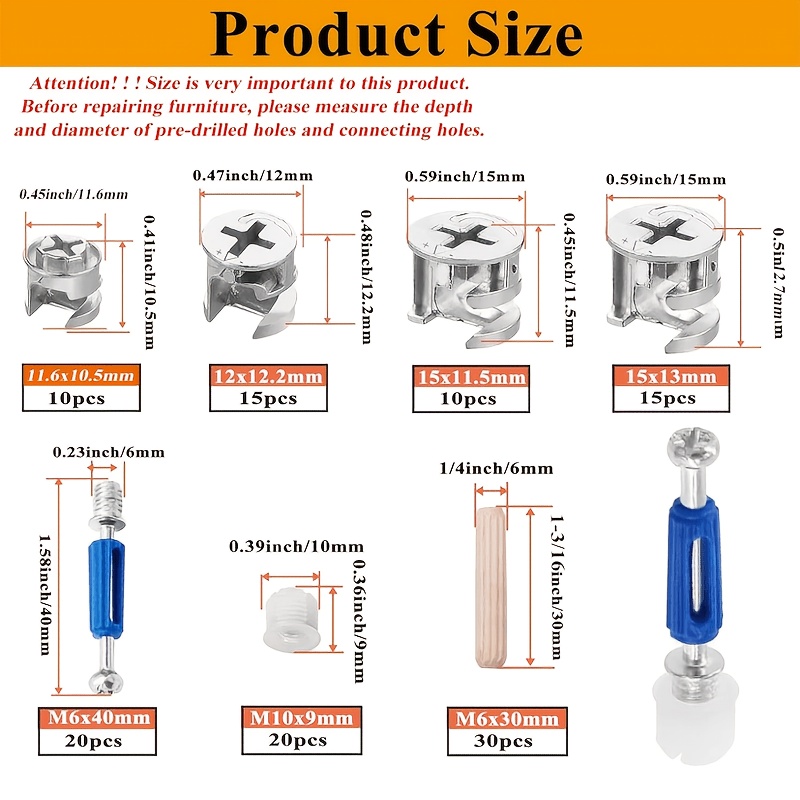 Complete Fastening Solution: With 120 pieces in the set, you have all the necessary hardware for secure and adjustable fastening, perfect for DIY cabinet assembly or repairs.