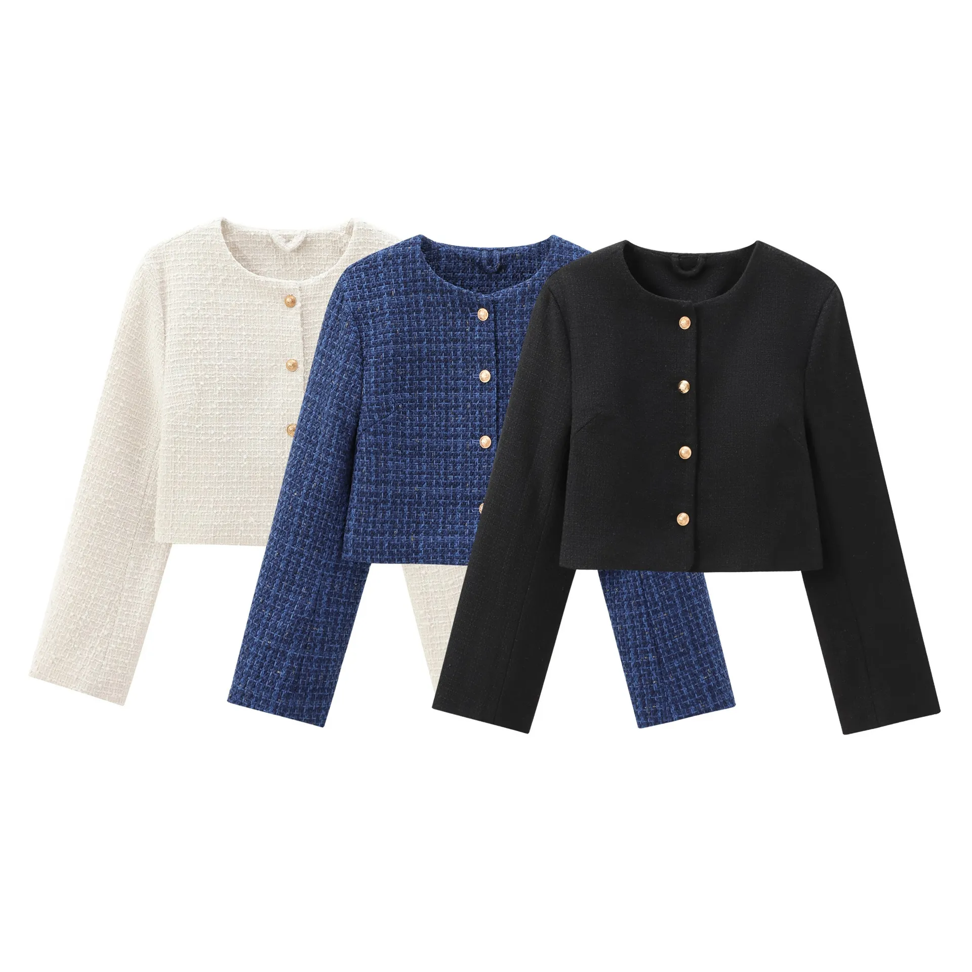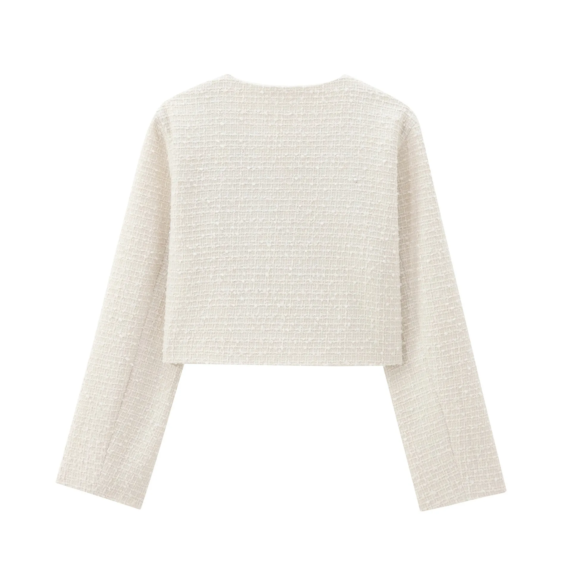 El cuello redondo y la botonadura sencilla ofrecen un look refinado y limpio, atemporal y versátil. Su diseño sencillo pero elegante permite combinarlo con una amplia variedad de prendas, desde vaqueros y camisetas informales hasta vestidos o faldas más elegantes.