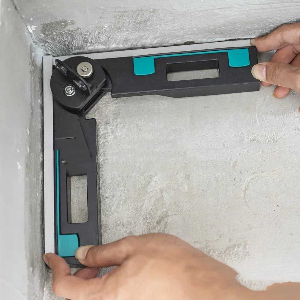 Includes telescopic corner callipers for outside corners and integrated foldable stop for easy marking on the workpiece, both inside and outside corners can be measured and angles can be easily marked on the workpiece.