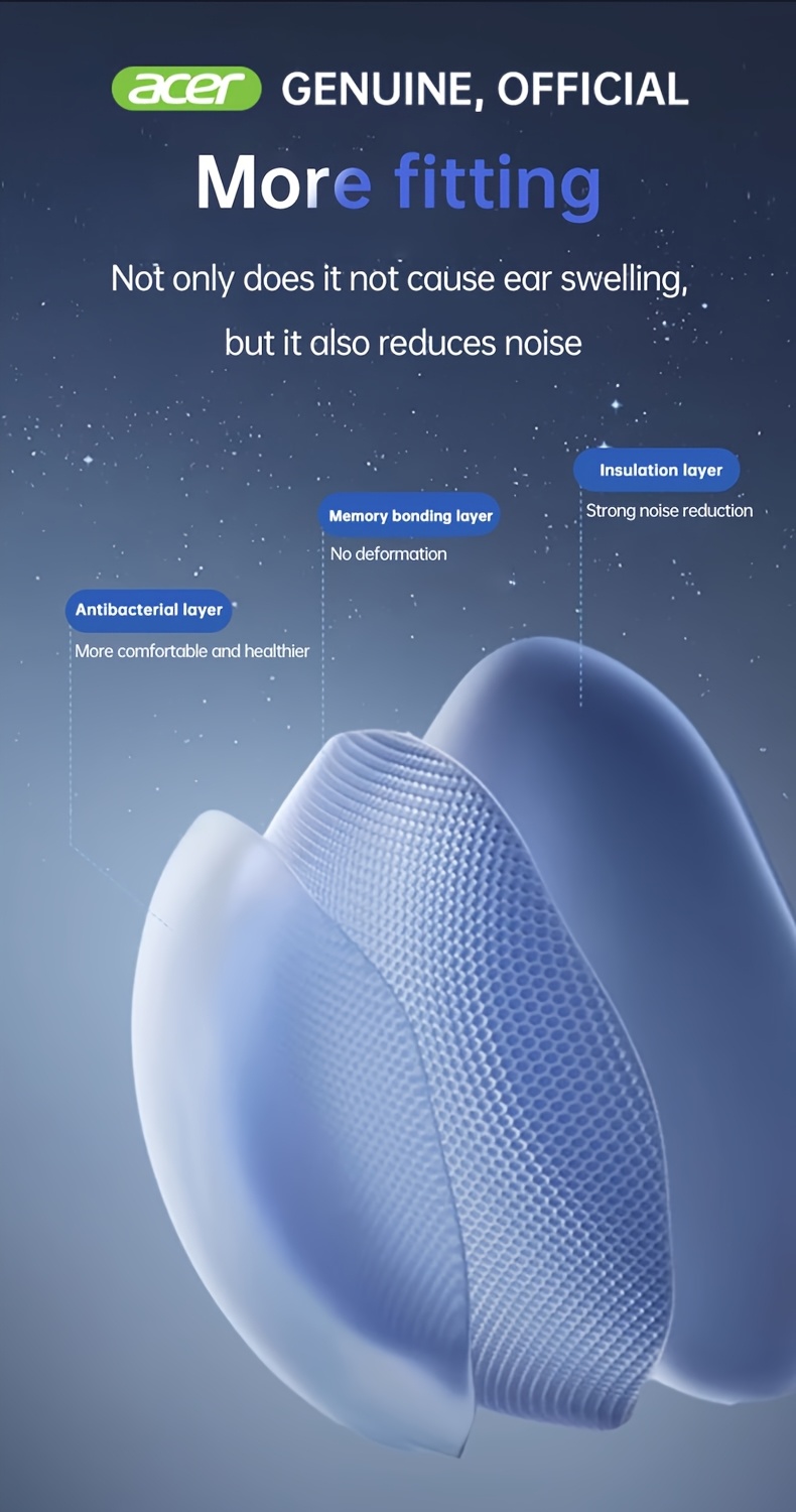 The Acer OHR548 Pro Wireless Headphones combine the best of modern audio technology with sleek design. Equipped with active noise cancelling (ANC), they block out unwanted background noise, providing a superior listening experience in noisy environments like cafes, offices, and public transport.