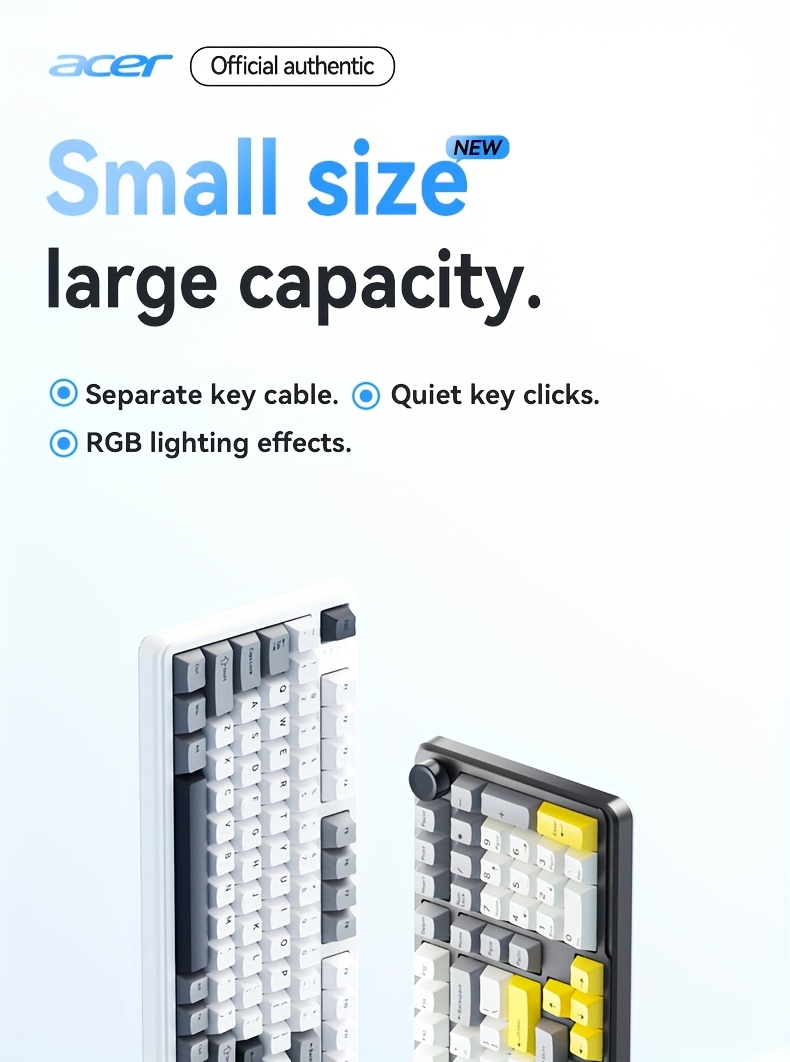 Acer wireless mechanical keyboard with RGB, tri-mode switching, PBT keycaps, dial control, and long battery life. Perfect for NZ gaming, office, and home use.