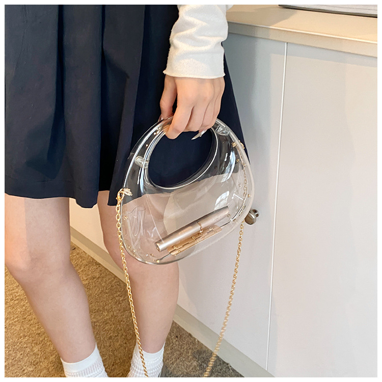 Not only does this handbag offer functionality, but it also serves as a striking accessory that enhances your overall look. Whether paired with a little black dress or your favorite jeans and a top, the Acrylic Small Size Gold Handbag adds a modern twist to any ensemble. Its lightweight construction makes it easy to carry, ensuring you can stay stylish without feeling weighed down.