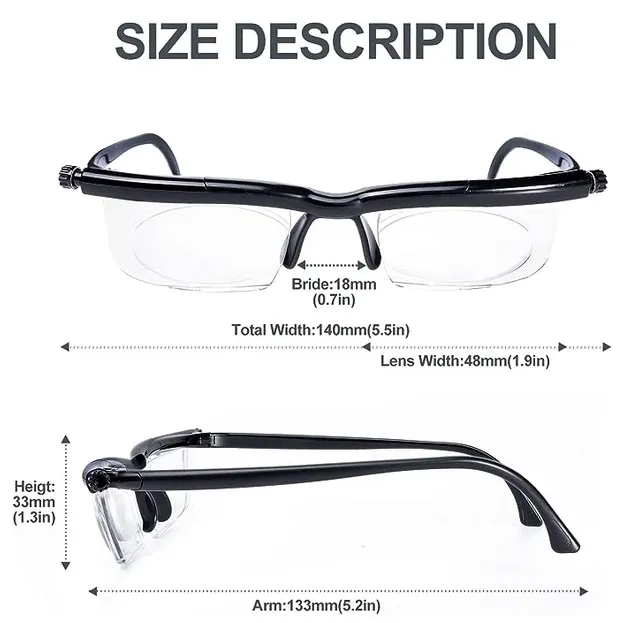 - Comes with: 1 x Pair of Self-Adjusting Lens Adaptive Glasses, 1 x Microfiber Cleaning Cloth, 1 x Case, 1 x Eye Chart For Easy Adjusting, 1 x Instruction Manual