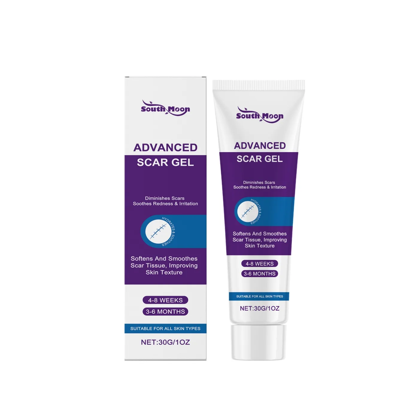 The South Moon Advanced Scar Gel 30g is a brand-focused skincare product designed for customers looking for a targeted scar care gel with strong visual identity and practical daily-use appeal. With South Moon clearly displayed on both the product tube and outer box, this scar gel stands out as a more recognisable and polished option in the skincare and scar care category. The clean white, purple, and blue packaging gives the product a professional presentation, while the gel format offers a convenient skincare solution for customers seeking an easy-to-apply topical treatment.