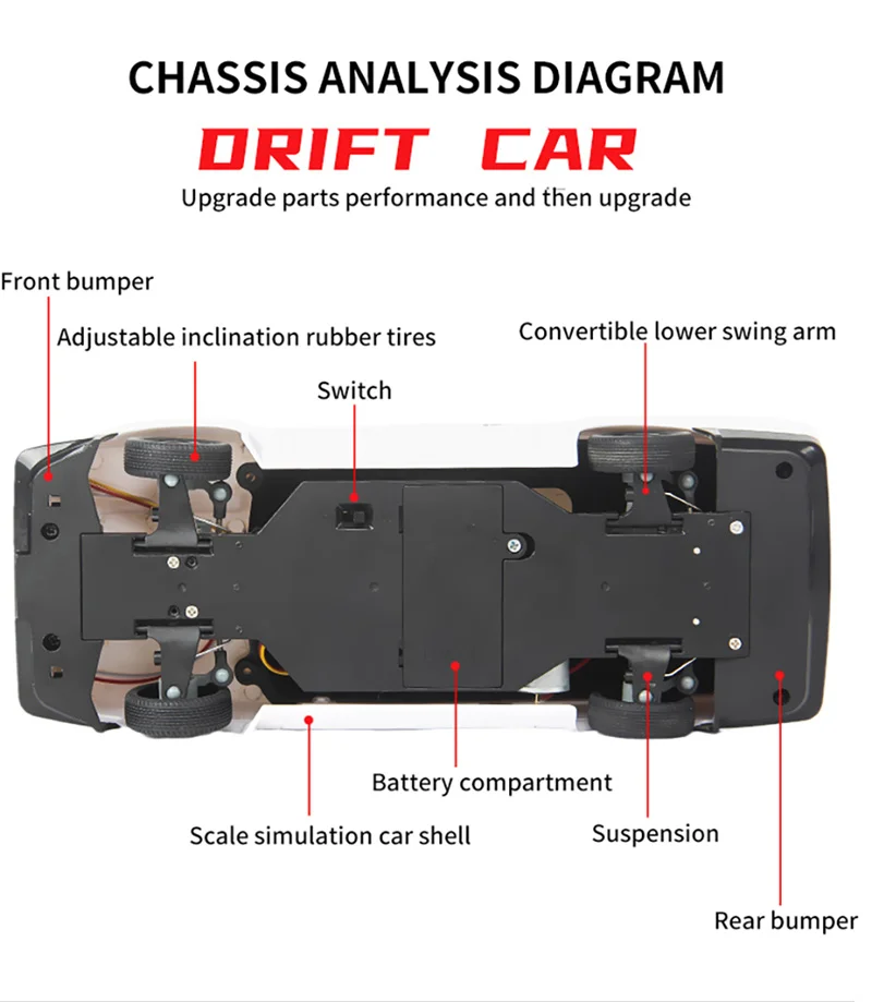 Boutique drift, multi -link design. Style 1:18 Restore the original car, and the appearance is completed in the actual proportion. Metal transmission shaft, customized 150 high -speed customization, drift tires, headlights can remotely control the third channel to control the flip light, with 9g steering servo, sustainable power consumption for 30 minutes, full -proportion linear control throttle and steering, tire motor belt block protection protection , The battery circuit board is overcharged, overdose, low-voltage protection, automatic frequency, remote control distance of 30-50 meters.