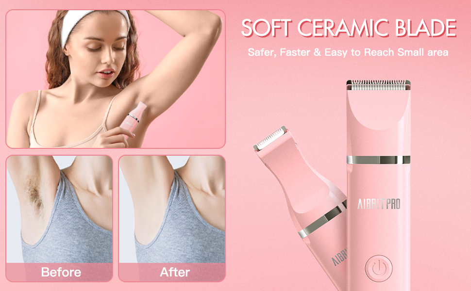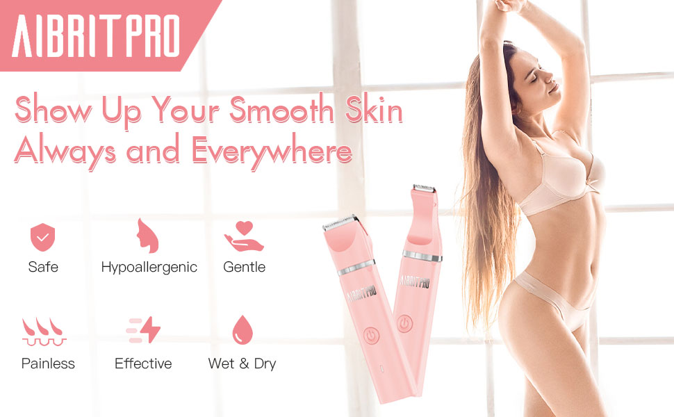 Recortadora de vello para bikini AIBRIT Con un diseño elegante y una forma delgada. Su tamaño compacto cabe fácilmente en un bolso para recortar donde y cuando quieras. Es un regalo maravilloso para novias, esposas y amigas.