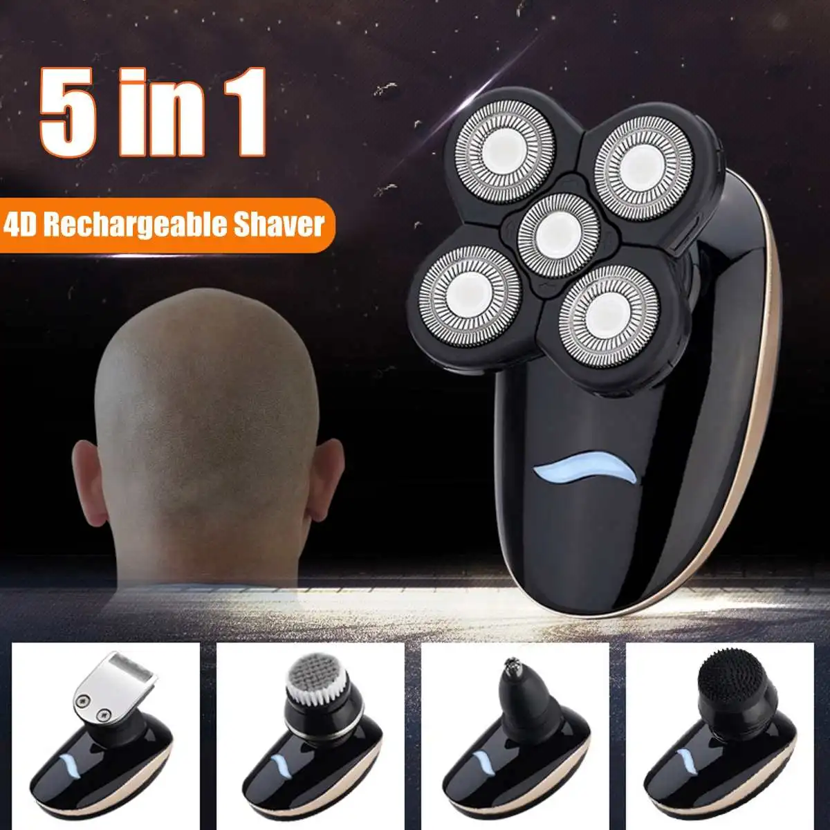 Afeitadora eléctrica recargable 5 en 1 4D para cabeza calva