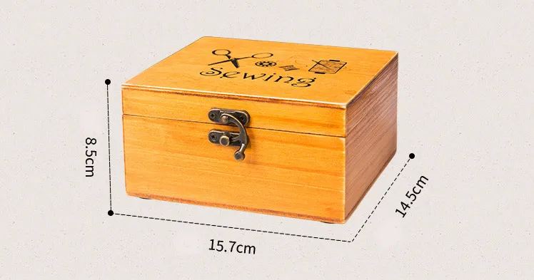Alcancía portátil para el hogar, para coser, para dormitorio de estudiantes, pequeña caja de madera, kit de costura cosido a mano