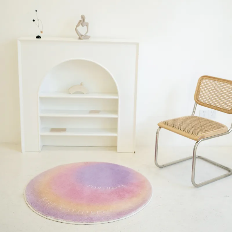 La forma redonda de la Alfombra Gradient Atmosphere para dormitorio, sala de estar y mesita de noche redonda le permite integrarse a la perfección en una variedad de distribuciones de habitaciones. Su diseño circular es perfecto para equilibrar las esquinas o crear un punto focal en el centro de una habitación. Ya sea junto a la cama, frente al sofá o en el centro de la sala, esta alfombra combina a la perfección con espacios pequeños y grandes, lo que la convierte en una pieza versátil para cualquier hogar.