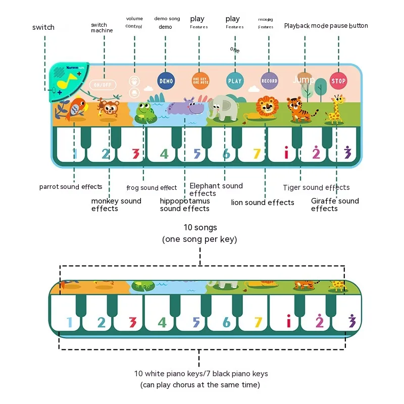 Alfombra de juego musical con animales divertidos y multifuncionales para niños