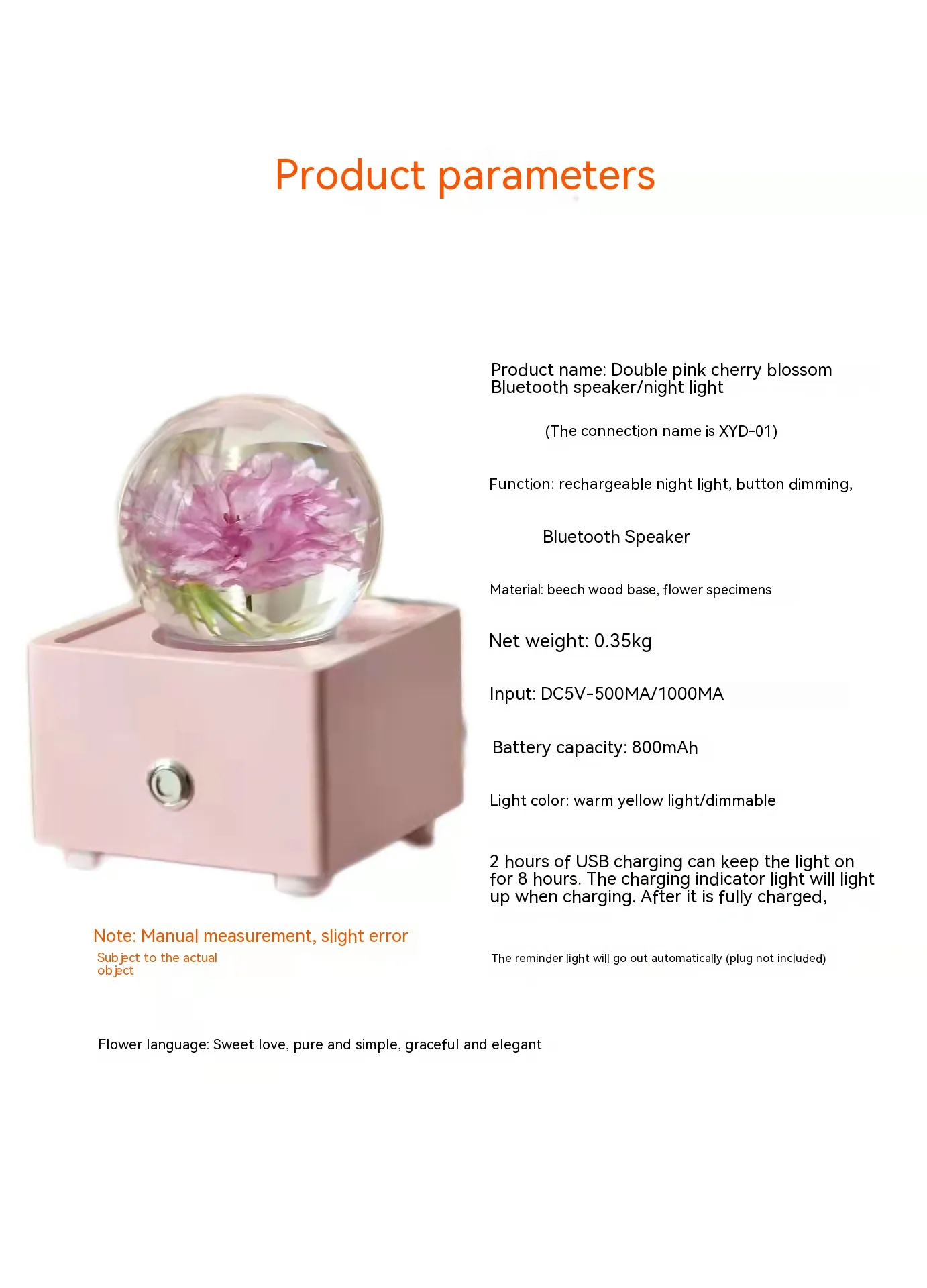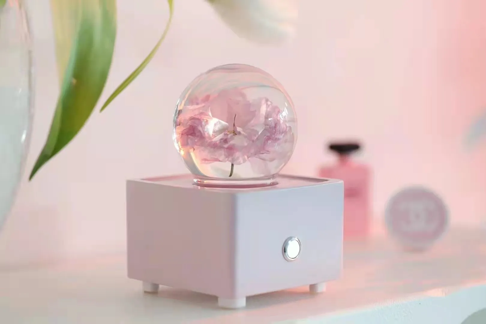 Introducción al altavoz Bluetooth con bola de cristal de resina y flor de cerezo