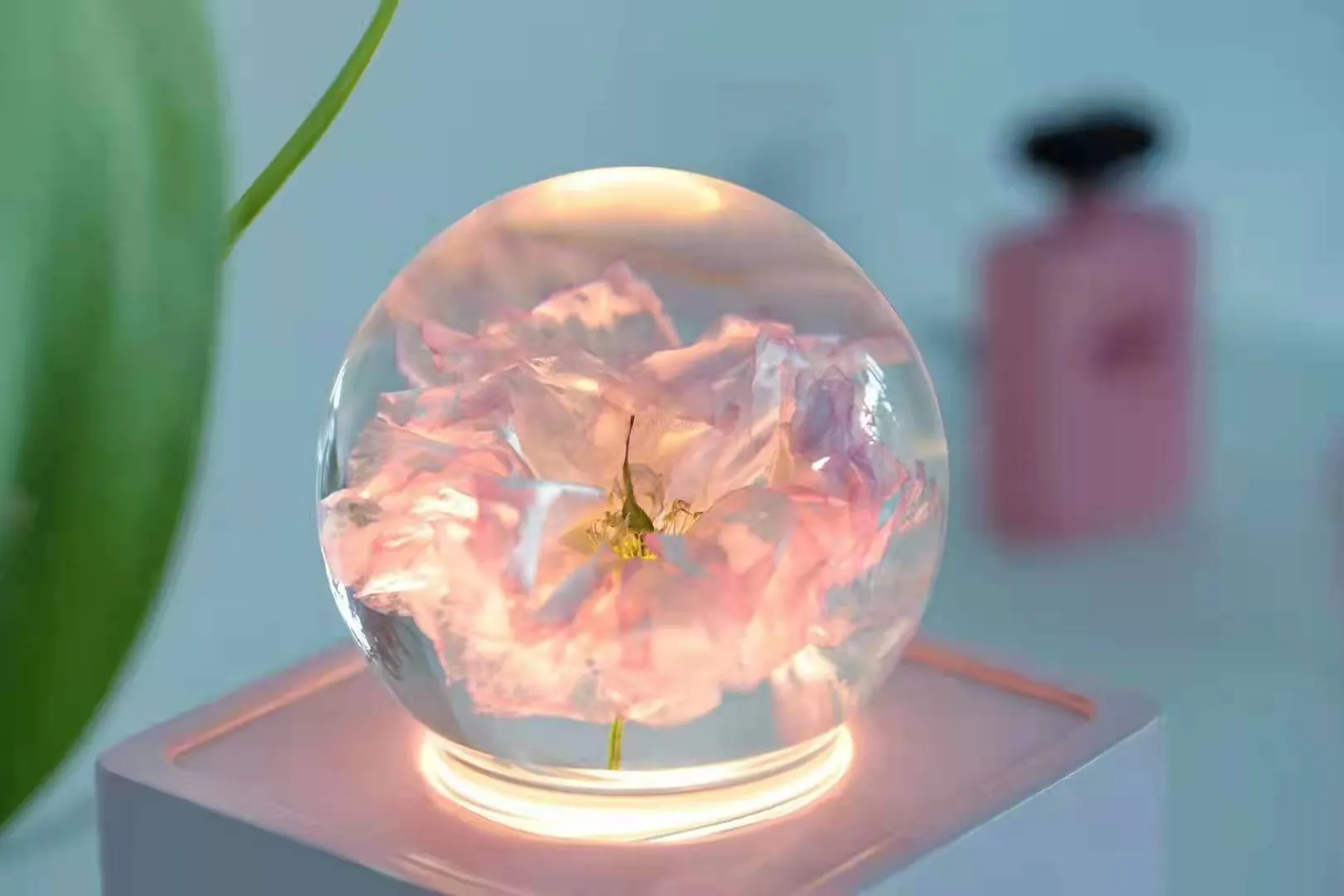 1. Impresionante bola de cristal de resina con diseño de flor de cerezo