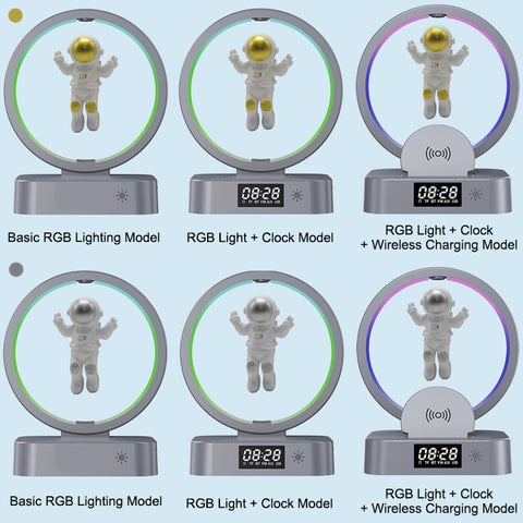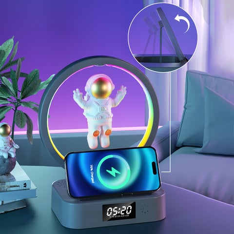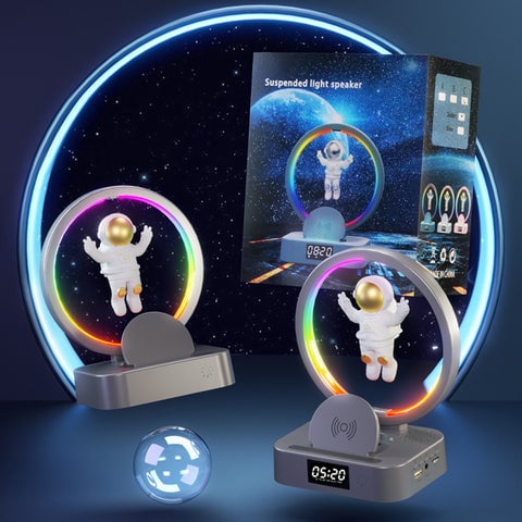 ¡Experimenta una calidad de sonido futurista con el altavoz Bluetooth USB de levitación magnética - Edición Astronauta! Este altavoz multifuncional integra altavoz, lámpara y cargador inalámbrico.