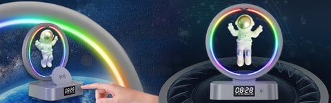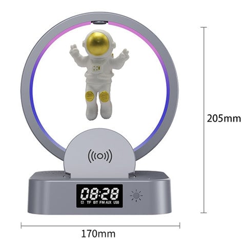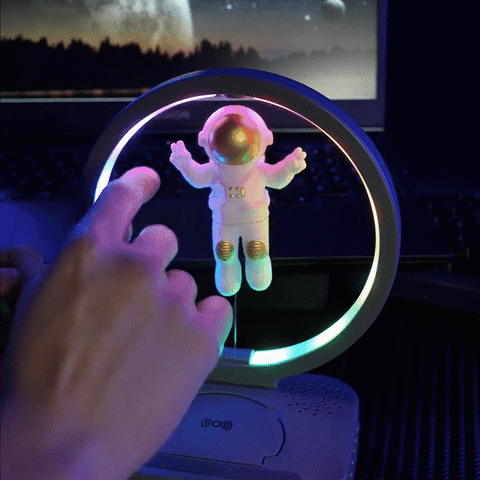 Con una apariencia única y un diseño innovador, este altavoz Bluetooth 3 en 1 utiliza tecnología de levitación magnética. El astronauta está suspendido en el aire, flotando y girando constantemente.