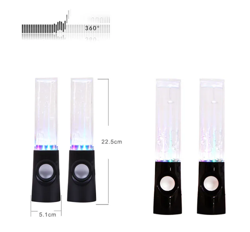 Después de conectar el dispositivo de audio, el altavoz emitirá una columna de agua colorida con el ritmo de la música, las luces LED de colores, contra el fondo, son particularmente impactantes.