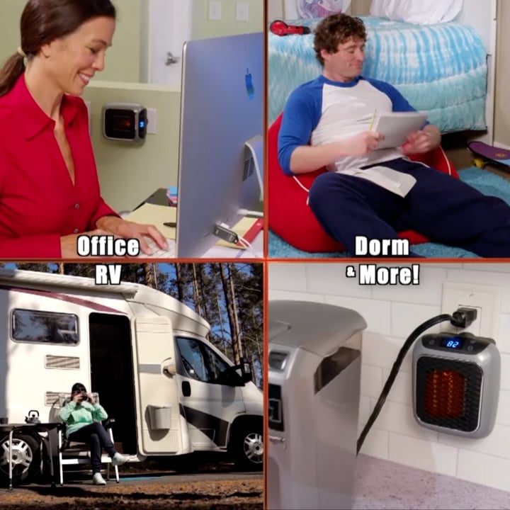 - AJUSTABLE: Diseño compacto y moderno con 2 velocidades de ventilador, tiempo de calentamiento rápido de 3 segundos. Termostato LED digital ajustable (60 °F - 90 °F). Gira 270 grados. El enchufe giratorio permite acceder a otras tomas de corriente.