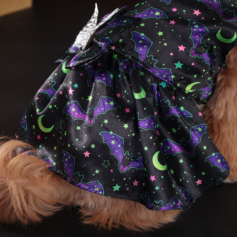 - 🐾EYE CATCHING DESIGN . Cute Halloween girl style, printed with cartoon pumpkins, ghosts, bats, witches, etc. This dog Halloween dress is also decorated with cute orange bow tie to enhance the cuteness of your pet. perfect choices to create a mysterious atmosphere at Halloween parties. Your pet is easy to change into 2 different styles of costumes at any time, suitable for pet's daily wear, Halloween, Christmas, Thanksgiving, masquerade ball, birthday, photo prop or theme parties.