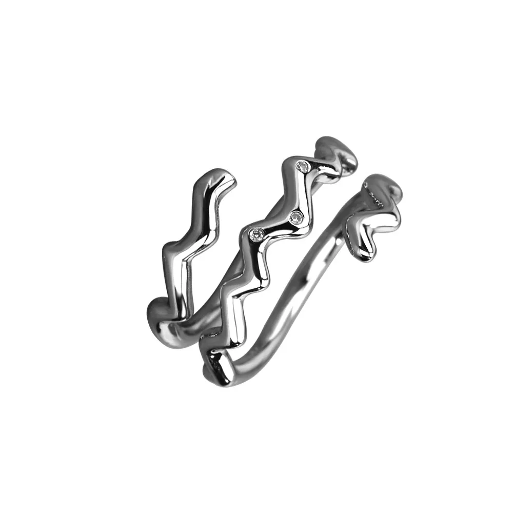 Anillo ajustable con piedra blanca y abertura para mujer con diseño de marea cruzada