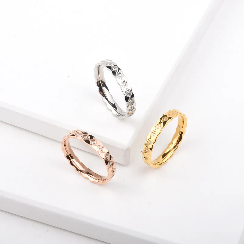 Anillo con diseño simple de diamantes y incrustaciones de diamantes