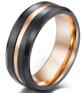 Anillo de acero de titanio bicolor en oro rosa negro con superficie cepillada mate