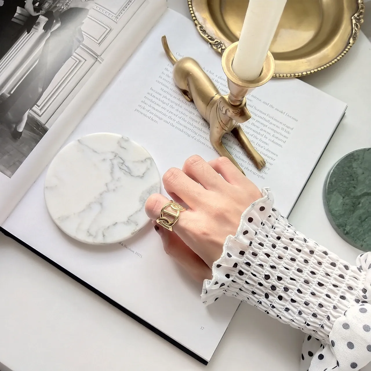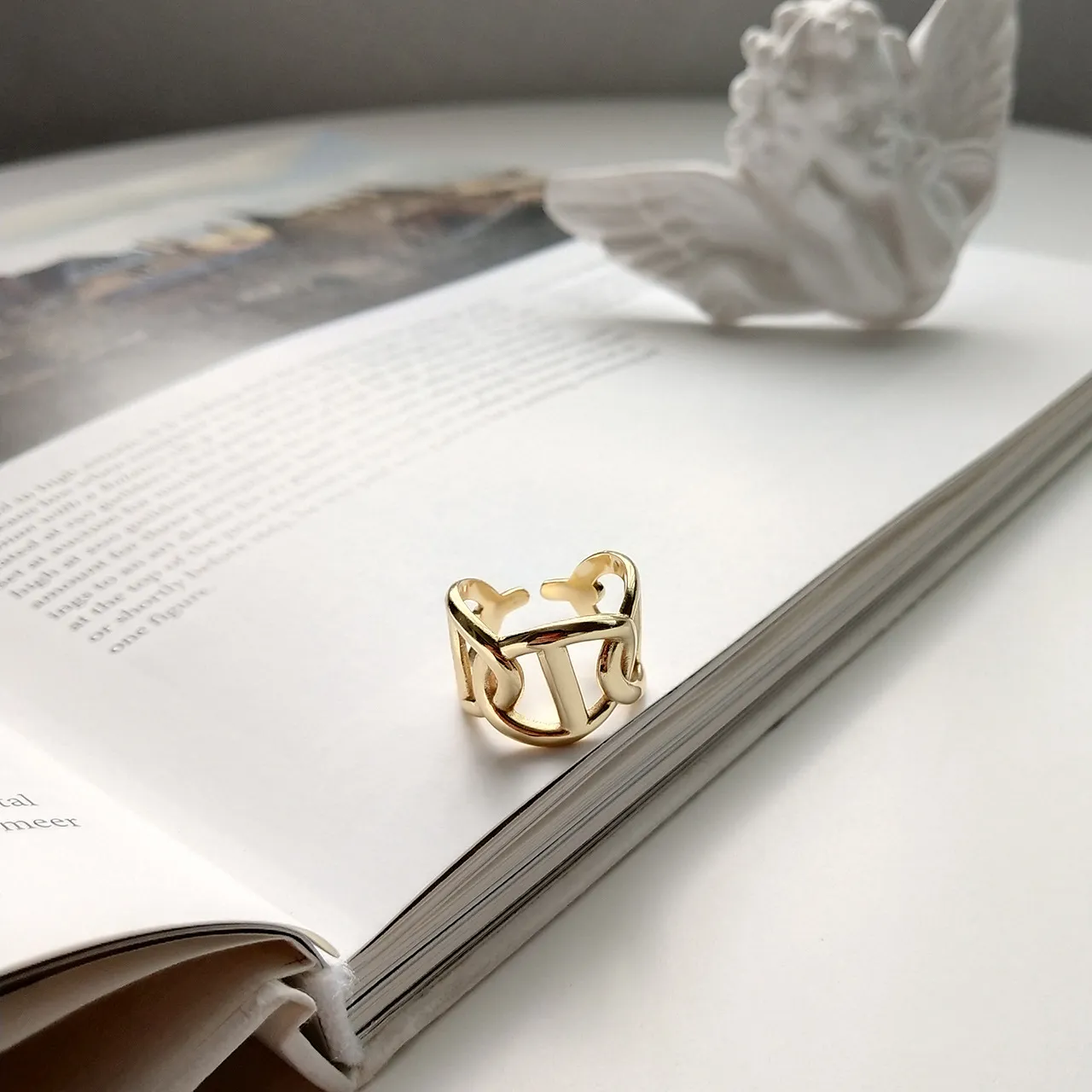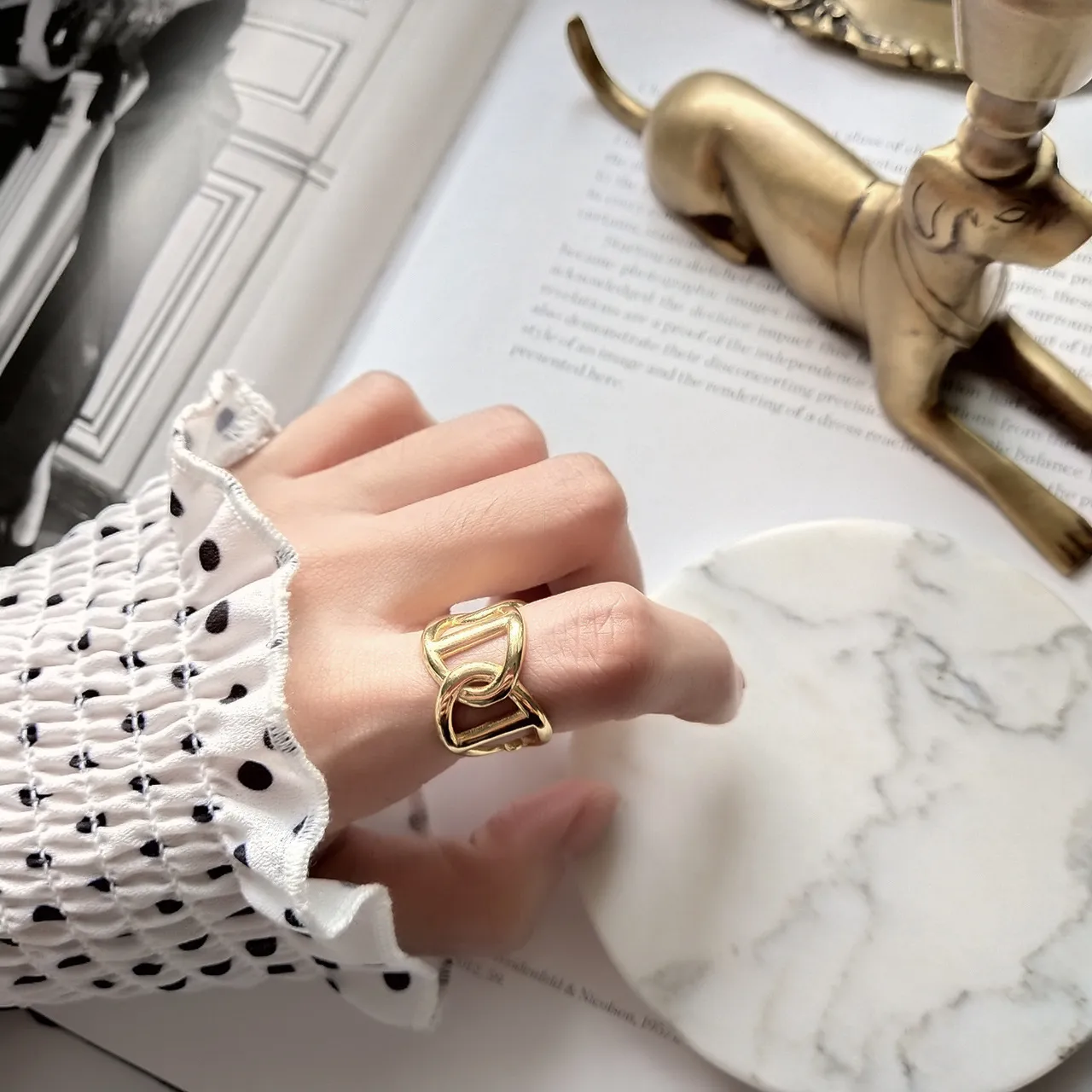 - Apilable con otros anillos: Para una declaración de moda audaz, considere apilar el Anillo de aro y bucle que combina con otros anillos minimalistas o gruesos. La combinación de estilos añade un toque personal a tu colección de joyas.
