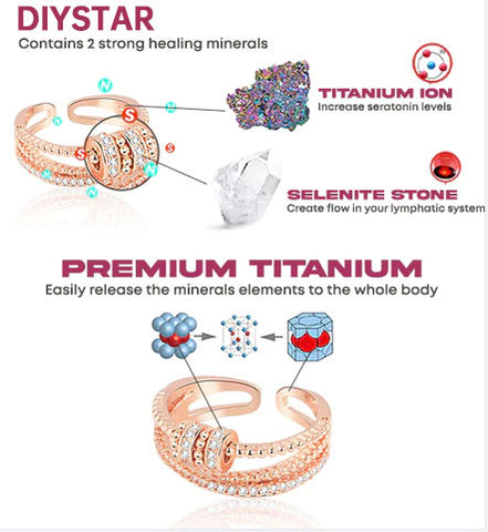 El Anillo Triple Fidget Threanic de DIYSTAR es un dispositivo médico japonés de nueva tecnología. Este anillo está completamente magnetizado por 55 mT con pasos de 10 mm en una orientación de polaridad alterna norte-sur. Esto permite que la fuerza de los iones de titanio provenientes de todo el collar distribuya sus efectos por una amplia superficie, lo que mejora la circulación sanguínea, el metabolismo y aumenta la energía masculina.