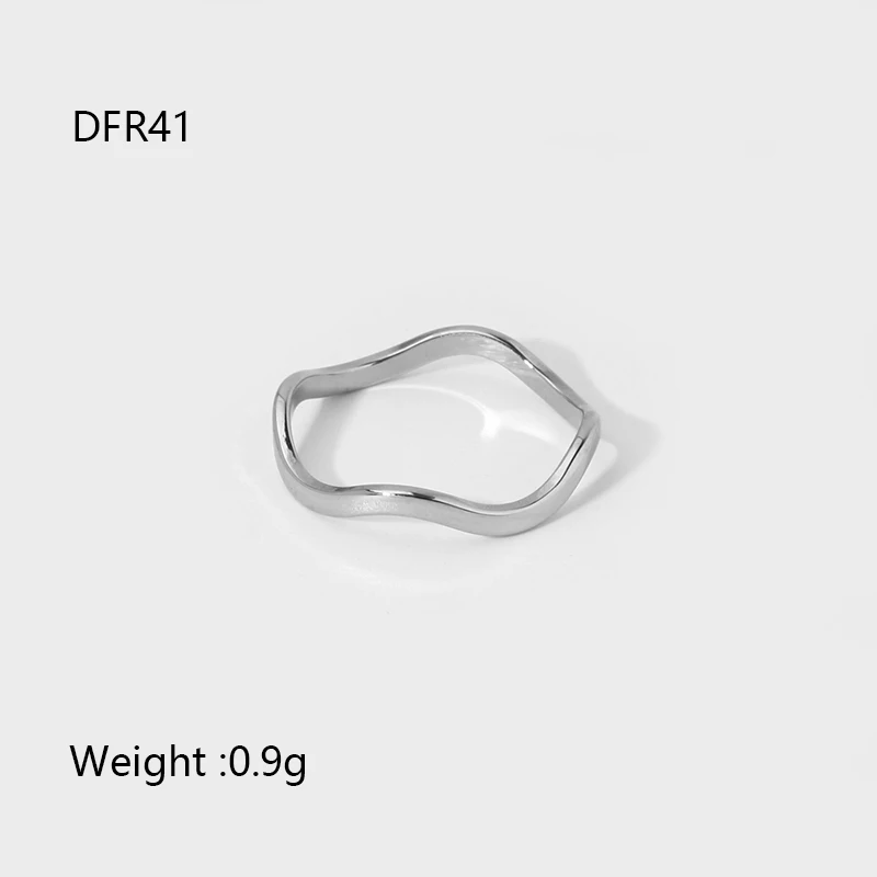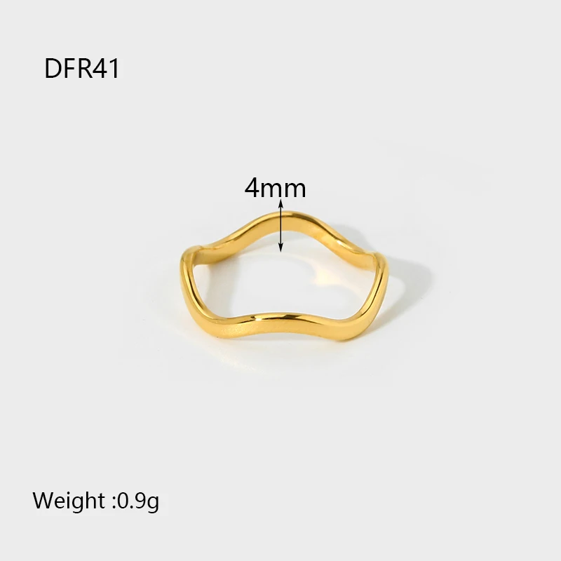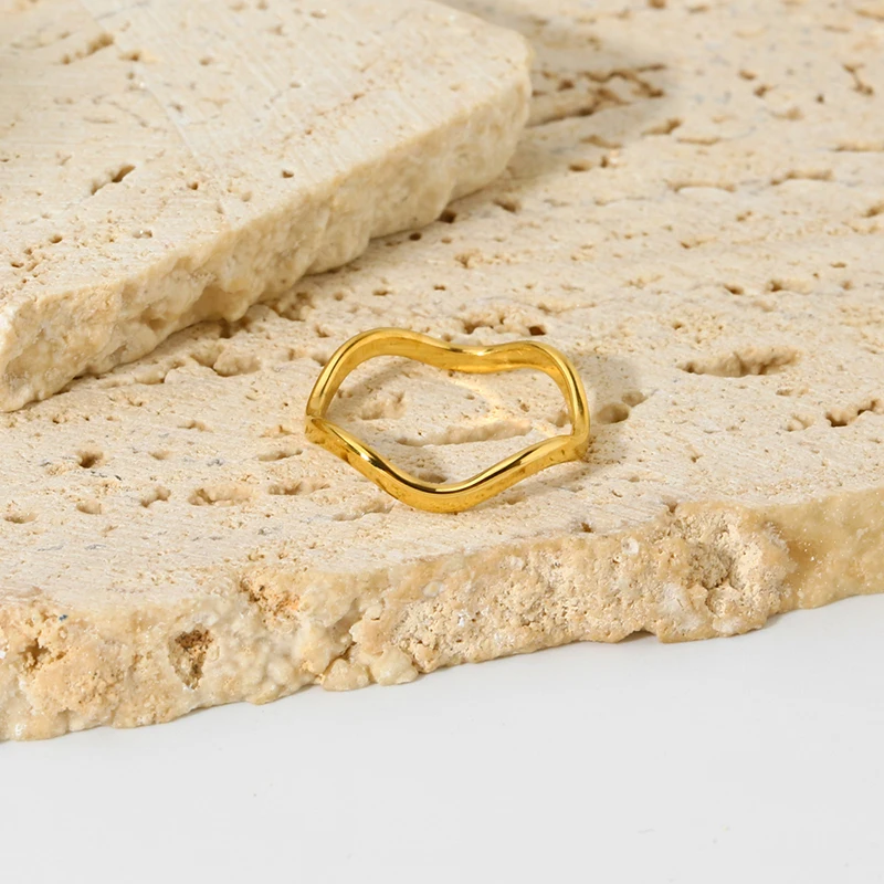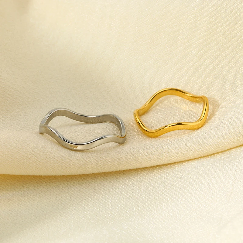 Anillo ondulado de acero inoxidable chapado en oro de 18 quilates resistente al agua