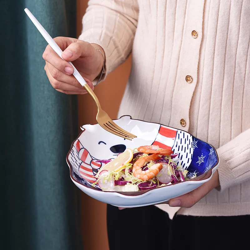 Animal Bakeware Hand-painted Underglaze Cartoon Tableware Plate Polar Bear Deep Plate