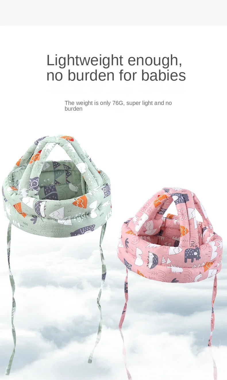 Made from breathable cotton and non-toxic, eco-friendly materials, this protective hat ensures proper ventilation, keeping your baby cool and comfortable. The materials are gentle on sensitive skin, providing protection without irritation.
