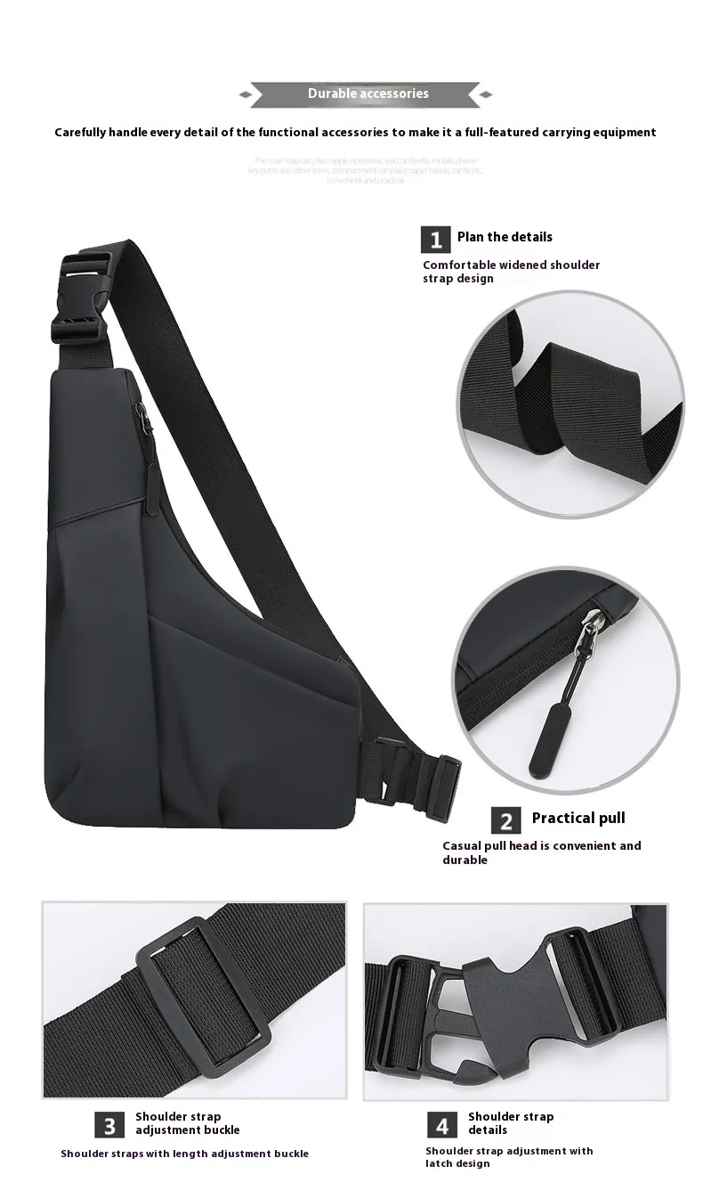 The anti theft messenger bag is a crossbody-style bag designed with enhanced security features to protect your belongings. It includes hidden zippers, concealed compartments, and reinforced materials that help prevent unauthorised access.