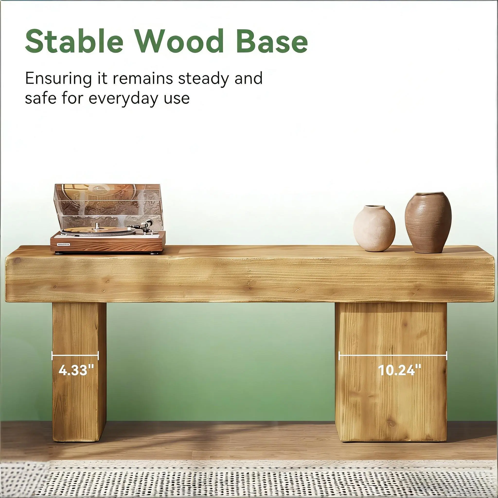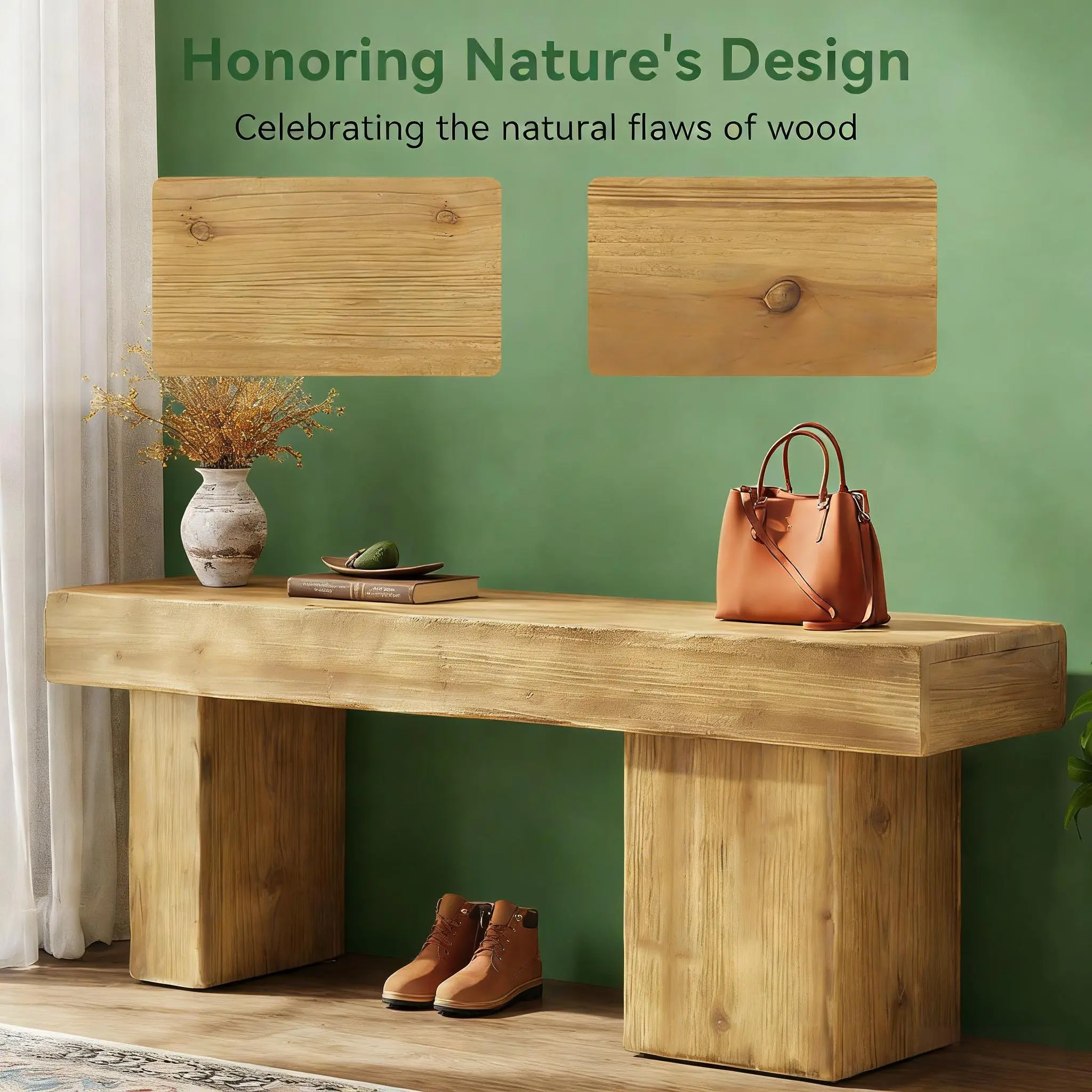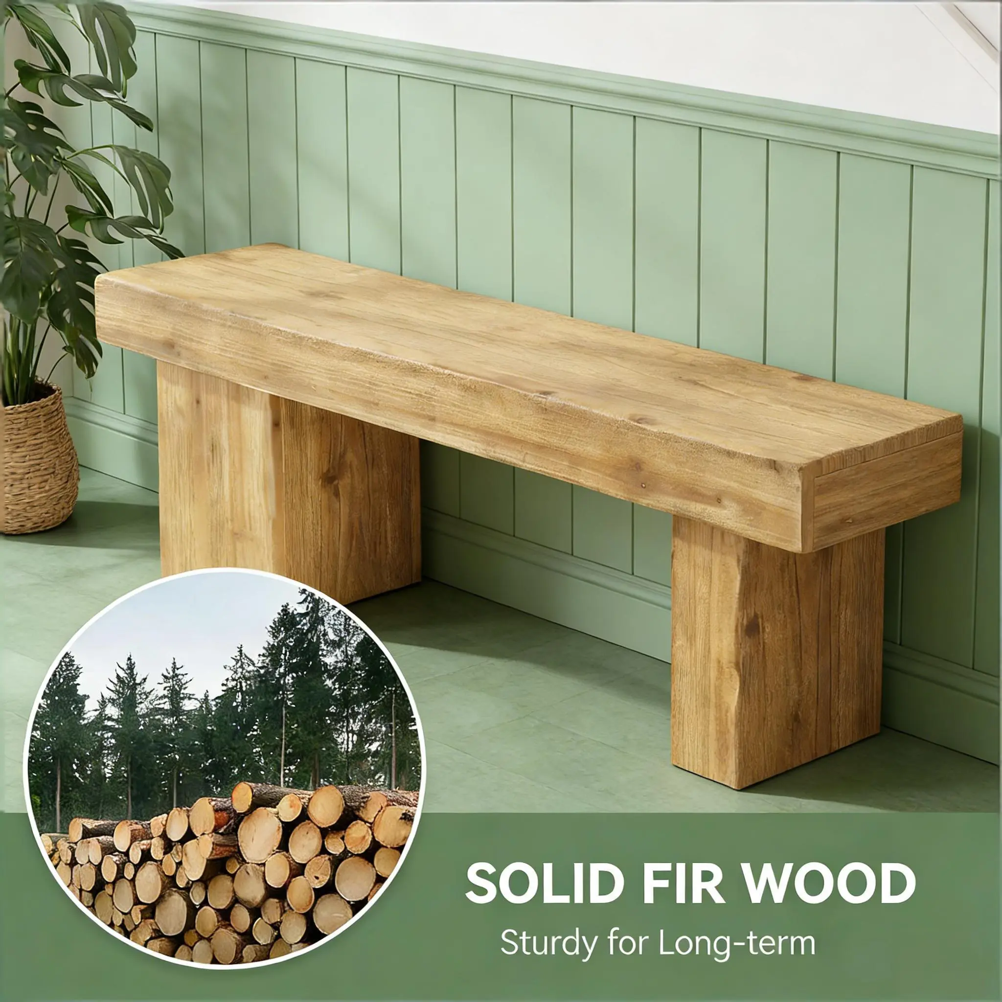 Important Reminder!!! 1) Attention: All products in our store do not support Canada self pickup ordering. Please do not create shipping labels for Canada. Our American products do not support self pickup to Canada 2)We do not ship to Alaska, Hawaii, US protectorates (e.g., Puerto Rico), P.O. boxes, or APO/FPO addresse 3)We don’t accept non-defective remorse returns Durably Crafted - This robust, fir wood bench with a 4.33" thick top supports up to 220 lb, providing reliable seating for years. Rustic Charm - With unique wood grain and knots, our bench offers natural beauty, adding a warm rustic flair to your decor. Artistic Design - Featuring asymmetrical leg widths (4.33" and 10.24"), the bench blends visual impact and stability, combining form and function. Versatile Use - Perfect as a kitchen bench, shoe bench or end-of-bed seat, it complements any decor, from farmhouse to modern minimalist. Simple Assembly - With straightforward instructions and tools provided, you can assemble this wooden bench in just 5 minutes.