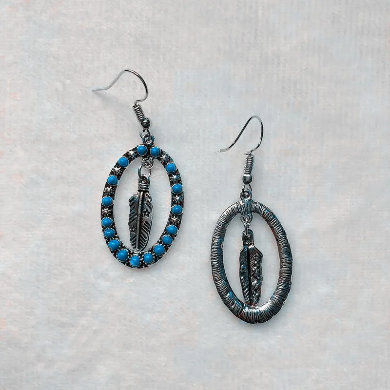 Make a bold and elegant statement with the Antique Silver Exaggerated Earrings featuring vibrant Blue Turquoise and intricate Feather Designs. These earrings are a perfect fusion of vintage charm and bohemian flair, offering a unique and captivating accessory for those who love to stand out with distinctive, nature-inspired jewelry. Whether for a special occasion or a casual outing, these earrings will add a dramatic touch of color and texture to your ensemble.