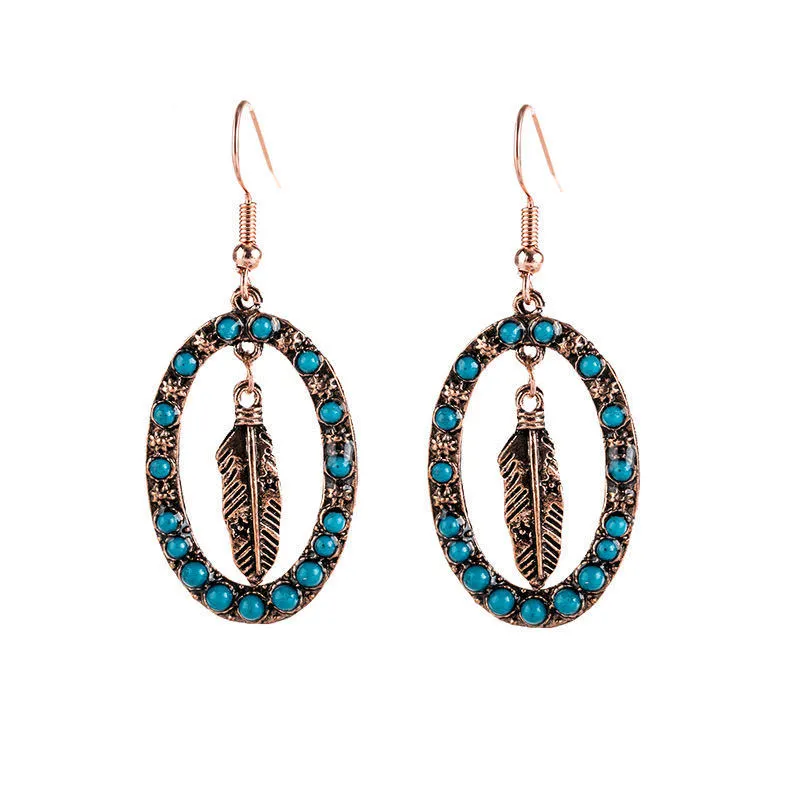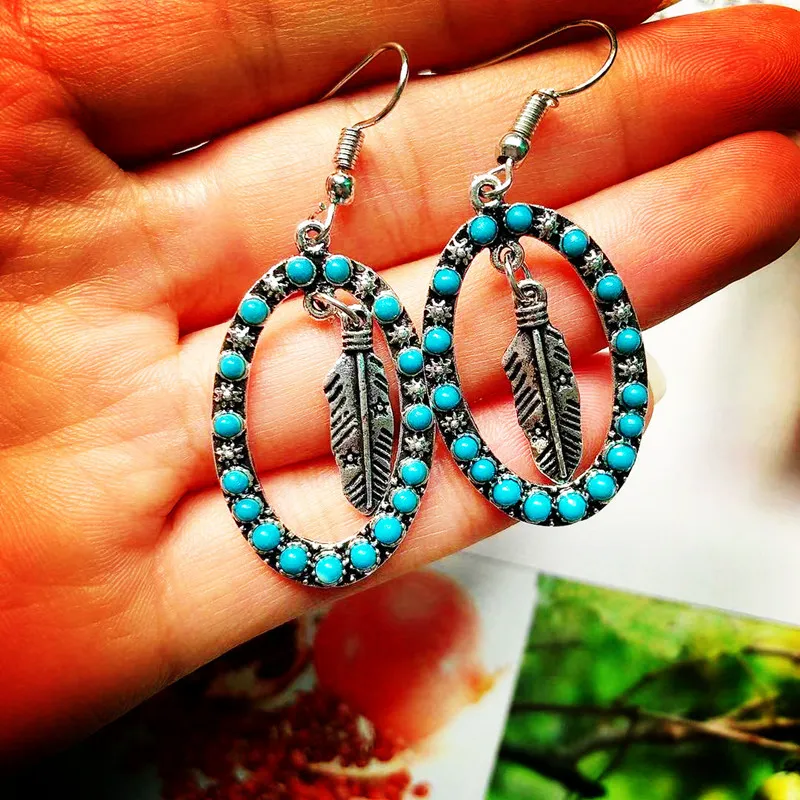 Why Choose Antique Silver Exaggerated Earrings – Vintage Blue Turquoise Feather Earrings?