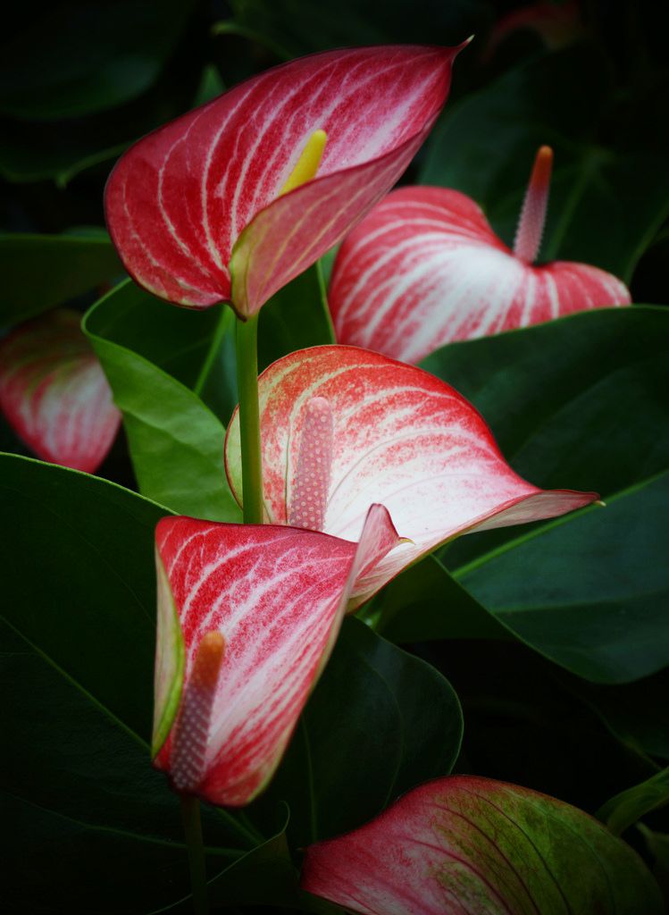 Floraciones impresionantes: El Anthurium Livium es famoso por sus vibrantes espatas rojas y blancas, que crean una decoración espectacular y llamativa. Estas flores en forma de corazón contrastan maravillosamente con las brillantes hojas verdes de la planta, convirtiéndola en una verdadera maravilla.