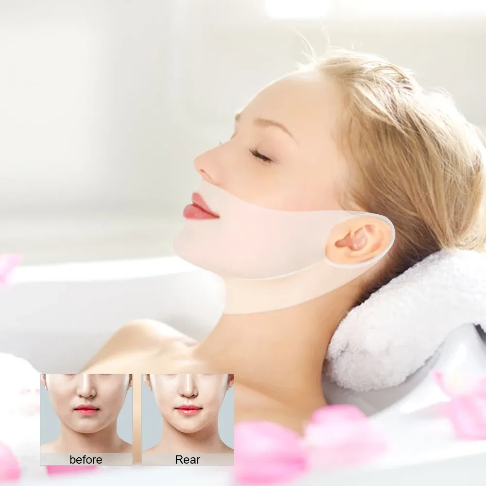 Le masque de levage de menton est fabriqué à partir de matériau flexible et recouvert d'ingrédients actifs pour minceur v ligne de menton et