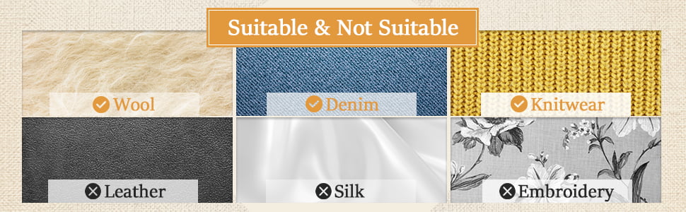 CUIDADO CON LAS TELAS: la aguja más pequeña del mercado, que no daña su ropa. Nuestra aguja de acero inoxidable es súper suave y no dejará agujeros en las telas recomendadas, como algodón, mezclilla, lino, poliéster, colchas, gasa, crepé y más.