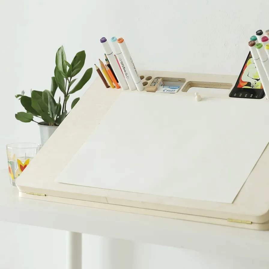 Adjustable Surface: One of the most important features of an art table is its adjustable surface. Many art tables come with a tilting or height-adjustable surface that allows you to work at the angle and height that is most comfortable for you. This is especially useful for artists who work with large canvases or need to adjust their work surface for different techniques. An adjustable art table can also help prevent strain and fatigue during long hours of work.