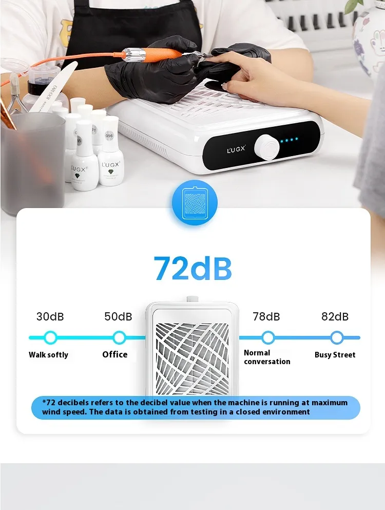 Mantén tu espacio de trabajo de uñas limpio y sin polvo con la aspiradora de uñas turbo sin escobillas, diseñada tanto para profesionales de uñas como para uso doméstico. Esta potente y silenciosa aspiradora cuenta con un motor turbo sin escobillas que recoge eficazmente el polvo y los residuos de manicuras, pedicuras y uñas acrílicas. Su avanzado sistema de filtración garantiza que tu área de trabajo se mantenga limpia, reduciendo la exposición a partículas de polvo para un entorno más saludable e higiénico. Gracias a su batería de larga duración, esta aspiradora de uñas permite un uso ininterrumpido, ideal para salones concurridos o para uso personal. Su diseño compacto y ligero facilita su transporte y almacenamiento, mientras que su robusta construcción garantiza su uso diario. Equipada con una batería recargable de alta capacidad, la aspiradora de uñas turbo sin escobillas proporciona horas de potencia de limpieza con una sola carga, ofreciendo la comodidad de un funcionamiento inalámbrico. El eficiente sistema de succión de la aspiradora absorbe rápidamente el polvo de las uñas, dejando tu espacio de trabajo impecable después de cada sesión. Tanto si eres profesional como si te encantan las uñas tú mismo, esta herramienta te ayuda a mantener un entorno ordenado y sin polvo con el mínimo esfuerzo. Diseñada pensando en la practicidad, la aspiradora de uñas turbo sin escobillas también cuenta con filtros fáciles de limpiar, lo que garantiza un mantenimiento sin complicaciones. Su diseño ergonómico permite un uso cómodo y su funcionamiento silencioso garantiza un ambiente tranquilo durante los tratamientos de uñas. Perfecta para uñas acrílicas, uñas de gel y nail art, esta aspiradora proporciona la potencia y la comodidad que necesitas para mantener tu espacio de trabajo limpio, para que puedas concentrarte en lograr uñas impecables en todo momento. Material: Plástico. Atributos del producto: Electrónica. Tamaño del paquete: 280 x 240 x 80 (1 mm). Detalles del producto: Fuerza de succión: 621 Pa. Potencia: 20 W. Material: ABS. Tamaño: 260 x 220 x 64 mm. Embalaje del producto: Aspiradora * 1, adaptador * 1, manual de instrucciones * 1, cepillo para polvo * 1, caja de regalo. 1